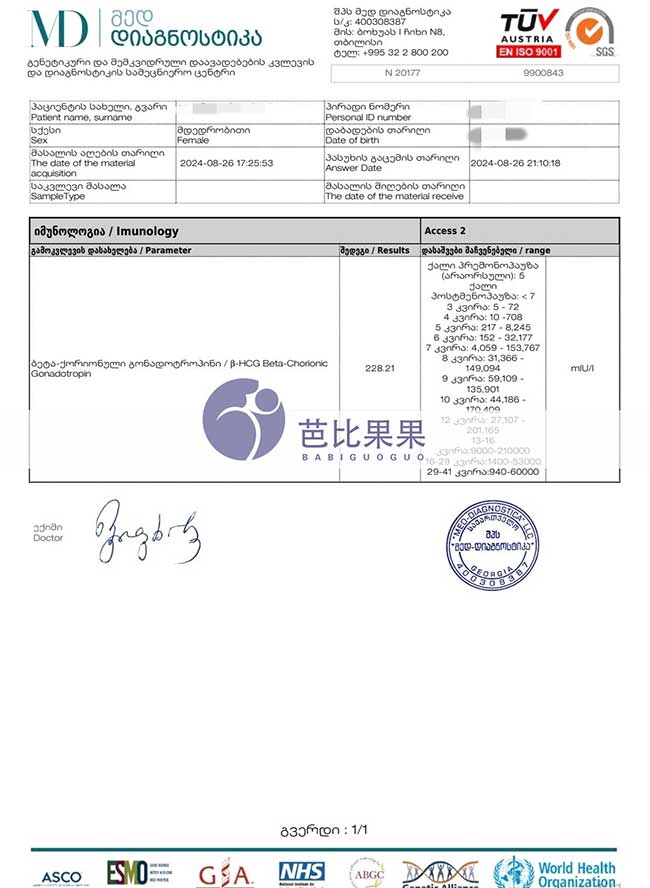 许夫妇家在格鲁吉亚匹配的试管妈妈一次移植验