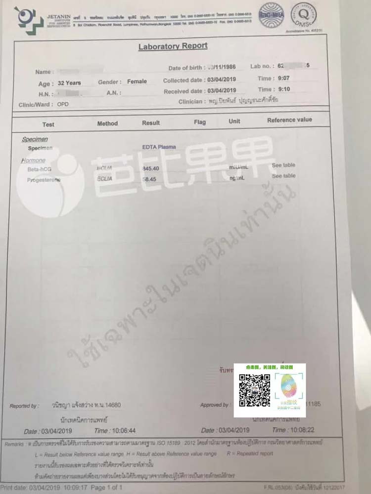 【芭比喜讯】恭喜广东Z美女选杰特宁医院PIYAPHAN医生试管,一次移植验孕成功,第九天抽血验孕的,数值很高,医生说应该是双胞胎哦